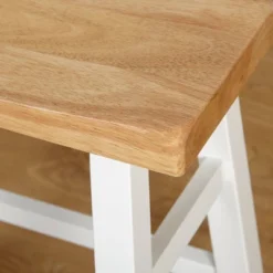 Dress-up your breakfast nook or kitchen with the Galena 4-Piece Counter Height Dining Set from Buylateral. Complete with two stools and a bench, this set provides seating for four. The rectangular set has a casual style, constructed of sturdy rubberwood in a two-tone natural and white finish. A perfect farmhouse style that will add just the right amount of country to your kitchen space.