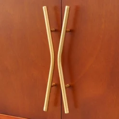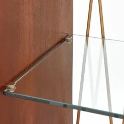 Complete your living room or dining room space with the Dennes Mid-Century Wire Accent Storage Cabinet from Buylateral. This cabinet features vintage charm from the angled metal handles to the unique patterned wire back – both in a stunning gold finish. Display decorative items, books and your favorite serving pieces on the two ultra-sturdy tempered glass shelves. The lower cabinet features an adjustable shelf making it ideal for stowing items of various size. Constructed of MDF in a walnut finish, this cabinet will add a retro contemporary feel to any room.