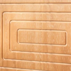 Sophistication and functional storage is provided with the Messina TV Stand form Buylateral. This striking stand features two sliding doors with geometric grooved panels for a modern and interesting look. Middle storage space has a fixed shelf along with a convenient grommet hole for easy cord management. A lower drawer offers additional space for gaming controls, remotes and more. An adjustable shelf is located behind each door making it easy to store various sized components and other items. The pine finish adds a natural look to this stand that accommodates TV’s up to 68”.