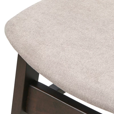 Add vintage appeal to your dining room or kitchen area with the Parlin Dining Chairs (Set of 4) from Buylateral. Stylishly designed curved backrests, this set of four chairs is constructed of solid rubberwood in a warm walnut finish with a Mid-century vibe. Upholstered padded seat cushions in a Latte Brown linen-look fabric will provide your family and friends hours of comfort.