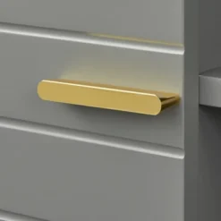 - Gray finish accented with gold-tone legs and handles